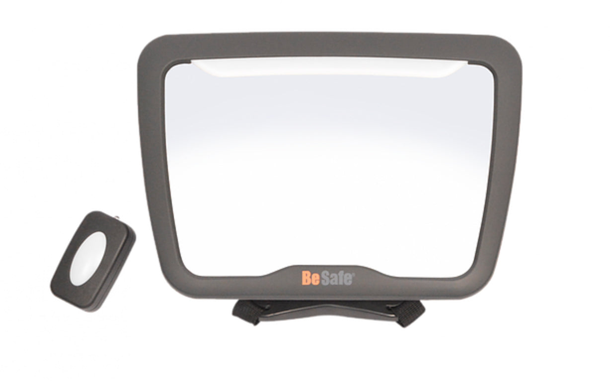 A luz LED ajustada com controlo remoto permite-lhe ver o seu bebé sem perturbar o seu sono. O espelho XL oferece uma superfície de visão aumentada.
