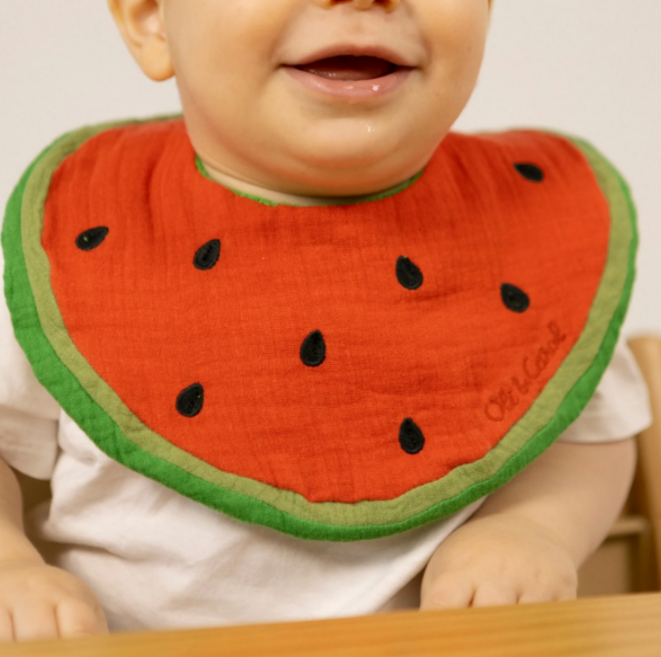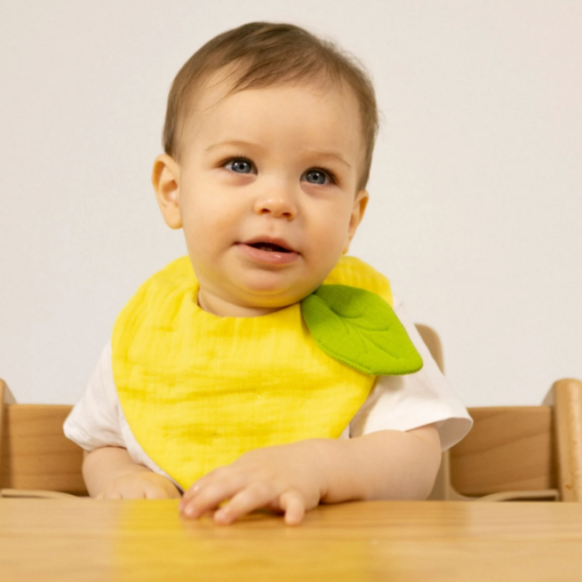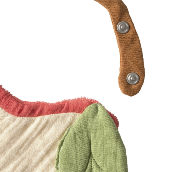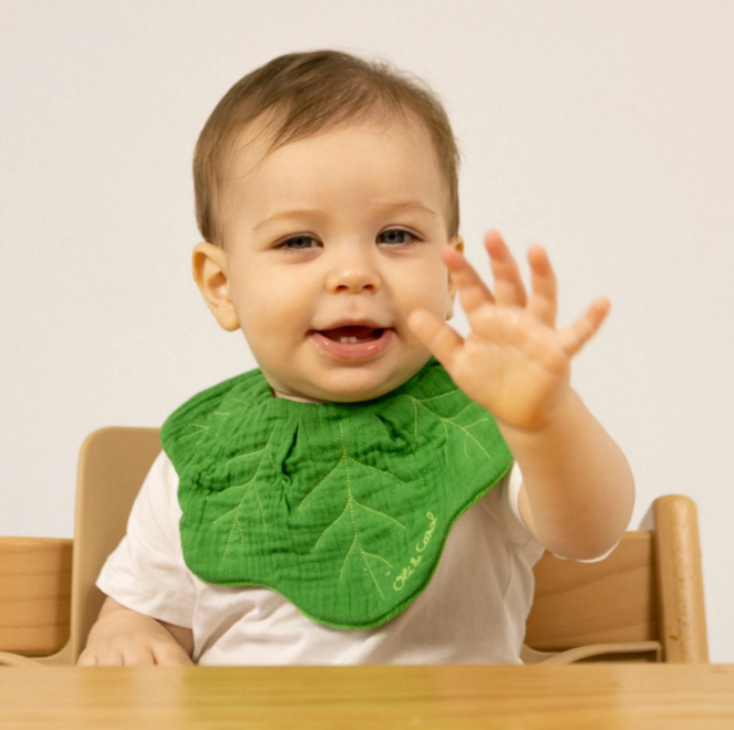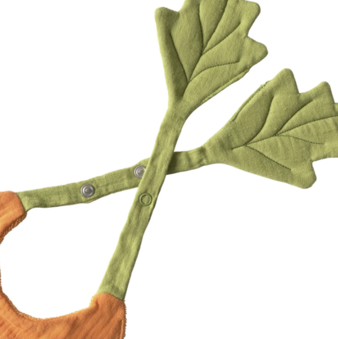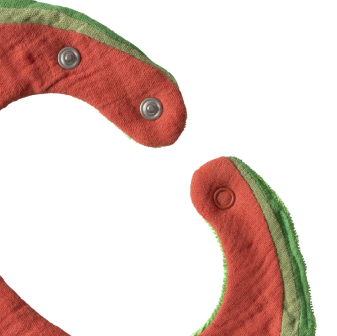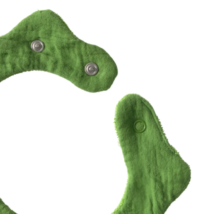 - 3 camadas : musselina de algodão orgânico na frente, entretela de musselina de algodão orgânico para manter os bebês secos e verso de algodão atoalhado para absorver.