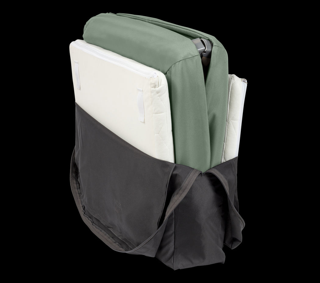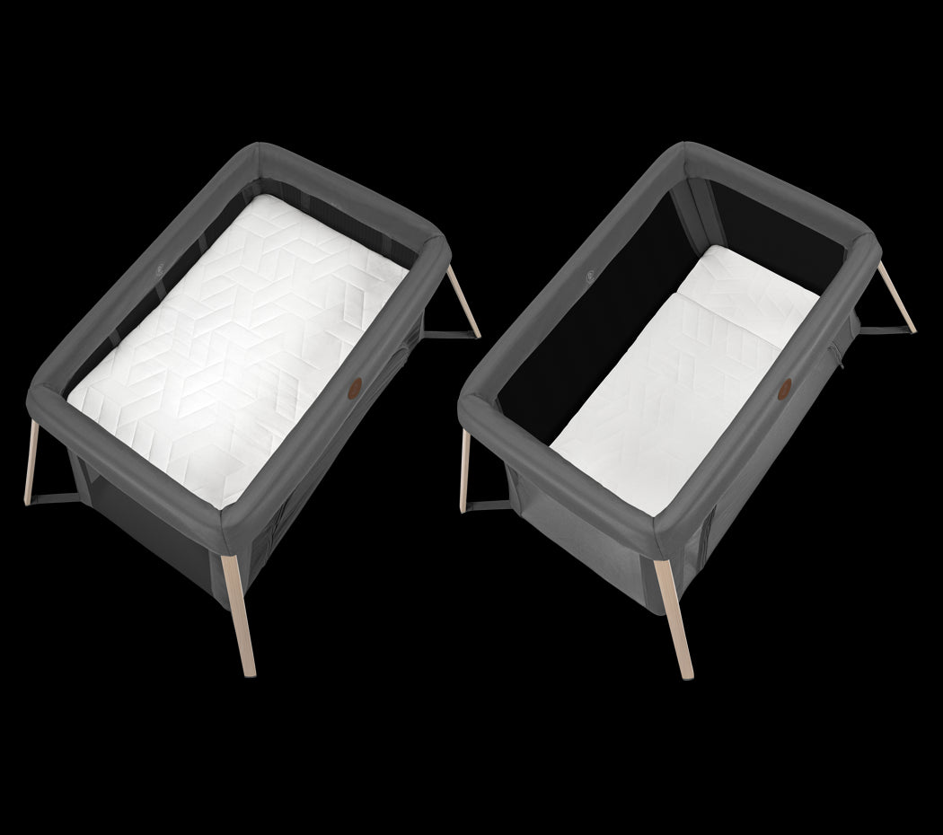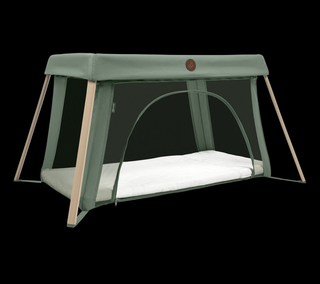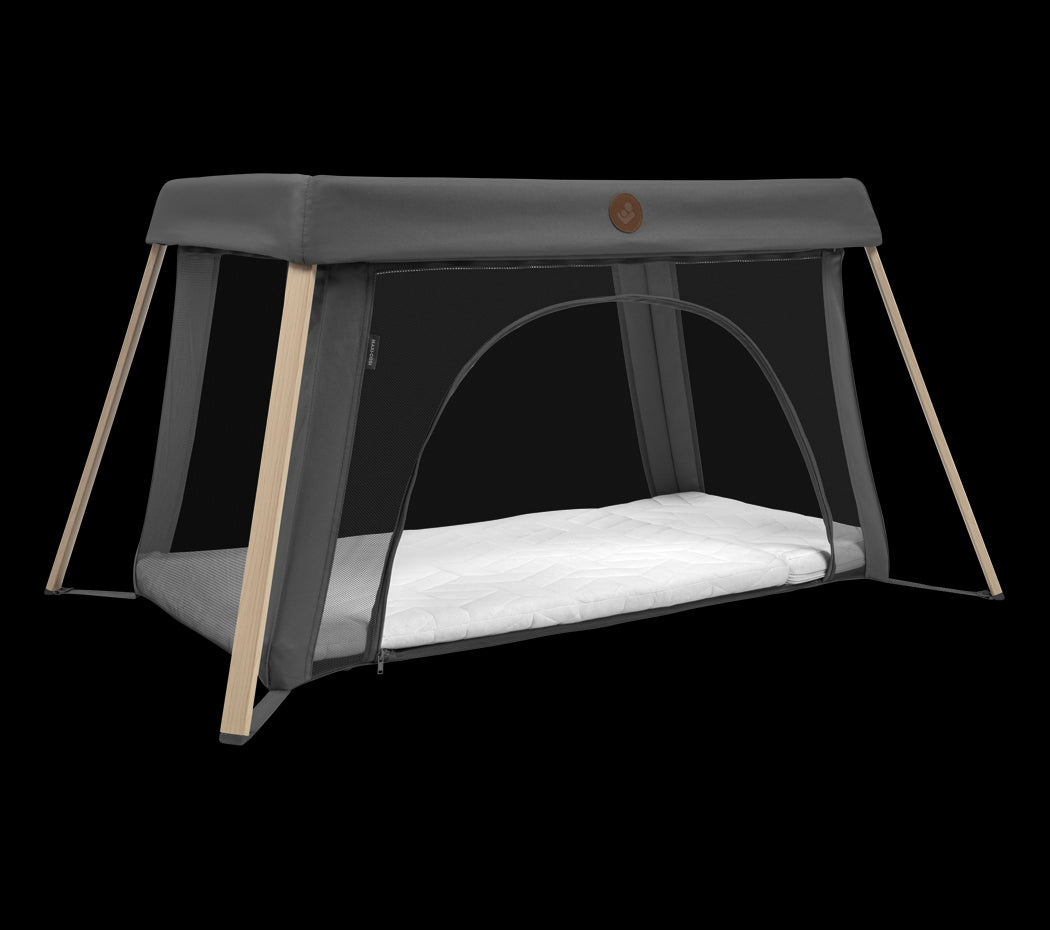 Ultra-compacta e leve (apenas 6 kg!), desmonta-se em segundos, sem necessidade de botões, tornando-a perfeita para viagens. O seu design arejado e transparente permite-lhe vigiar o seu filho, ao mesmo tempo que lhe proporciona a ventilação de que necessita. Os dois níveis de altura e o colchão extensível garantem máximo conforto na hora de dormir.