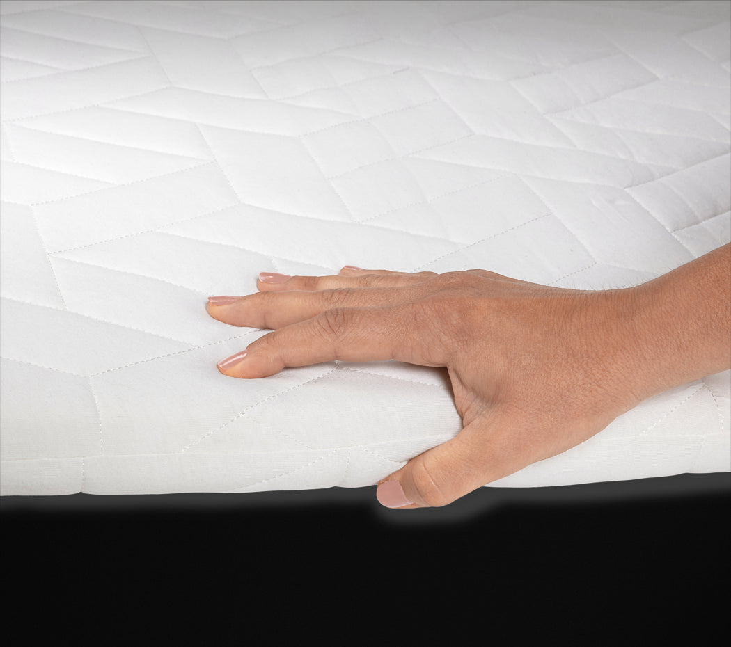 Inclui um colchão de espuma de alta densidade e uma capa de algodão orgânico acolchoado para um excelente conforto;