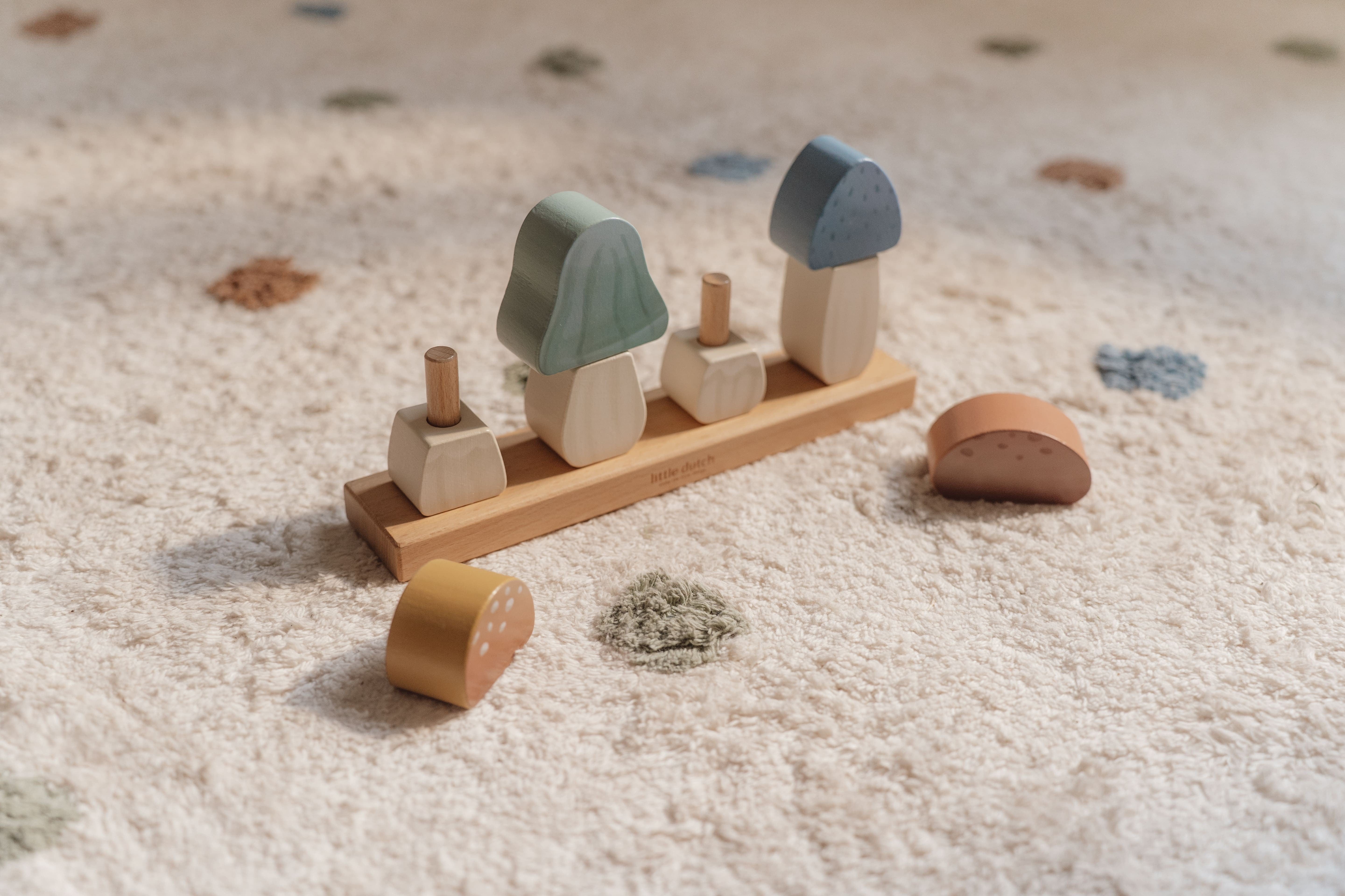 Este jogo de empilhar permite criar várias combinações, estimulando a imaginação e criatividade dos mais pequenos.