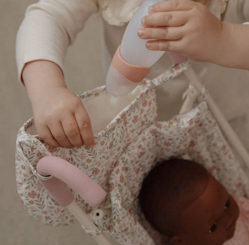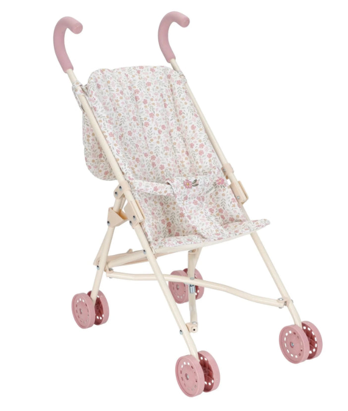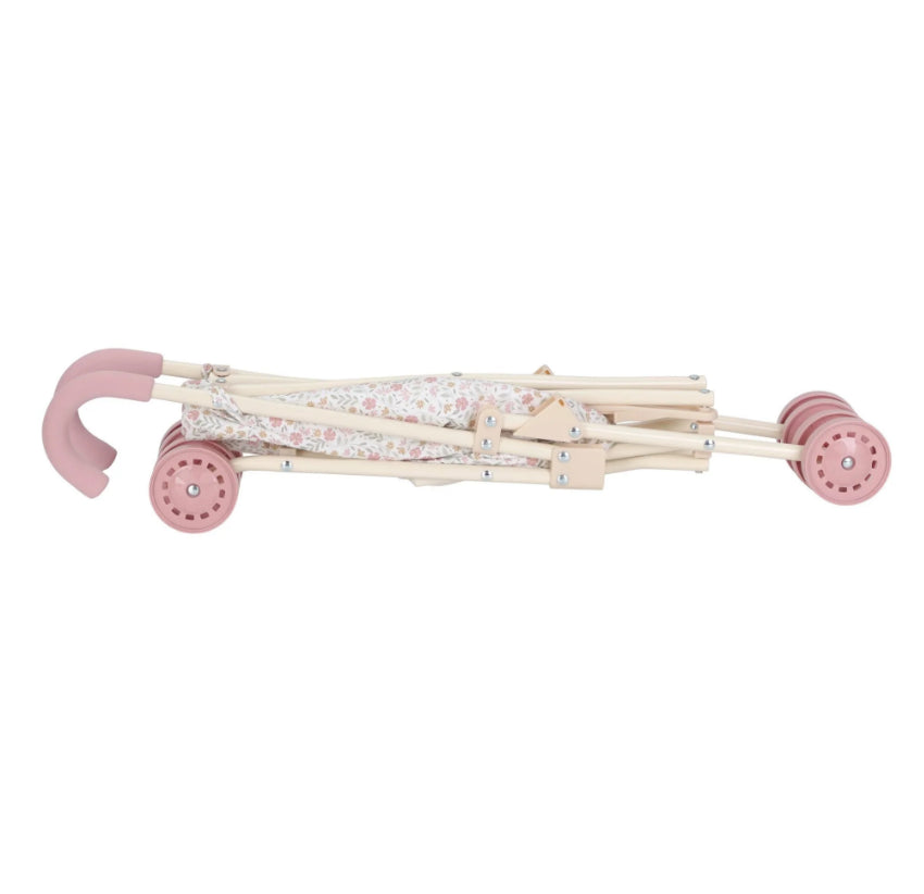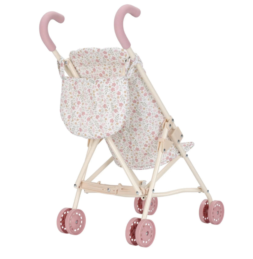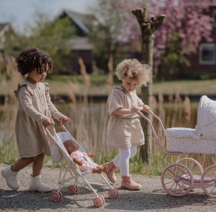 Faz passeios deliciosos com este carrinho de bonecas em metal e cheio de charme, e dá à tua boneca a viagem da sua vida! Graças às quatro rodas, o carrinho desliza de forma suave e estável, perfeito para usar tanto dentro de casa como no exterior. A estrutura rosa e os punhos macios completam este carrinho cheio de estilo.
