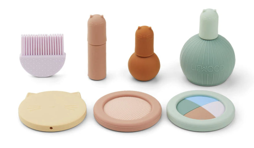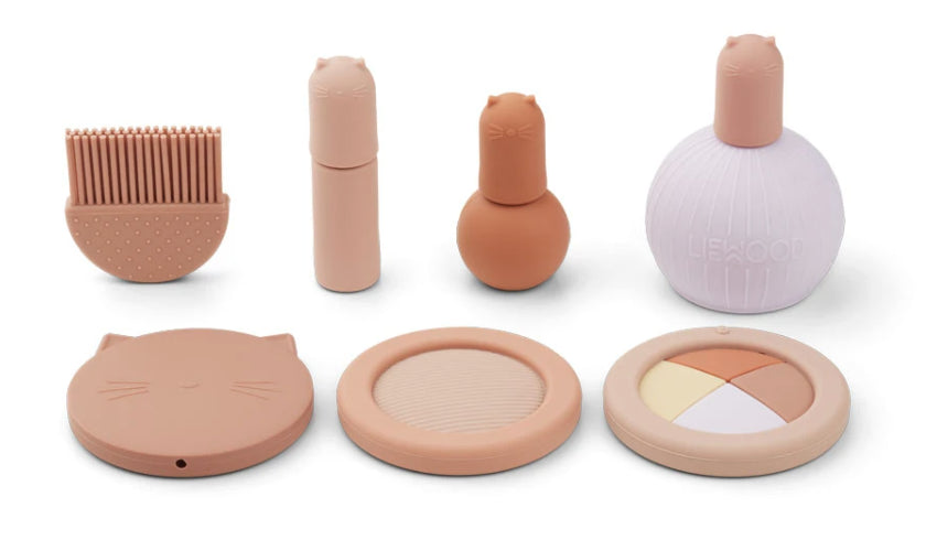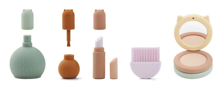 Inclui: pincel, pó, sombra, verniz, perfume e batom.