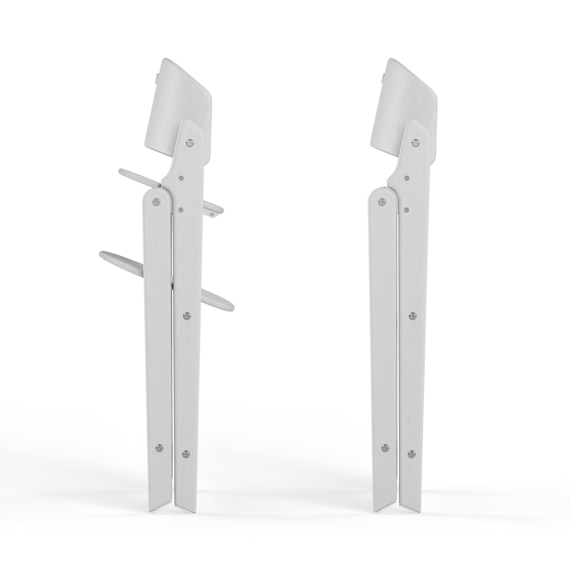 Quando dobrada, as tábuas de madeira podem ser guardadas num espaço especialmente concebido para o efeito no centro da cadeira.