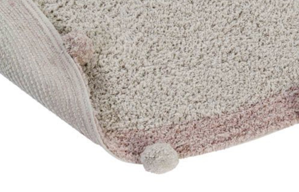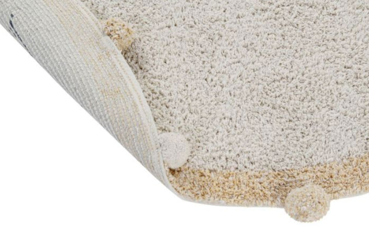 Este tapete é 100% algodão e pode ser lavado na máquina de lavar.