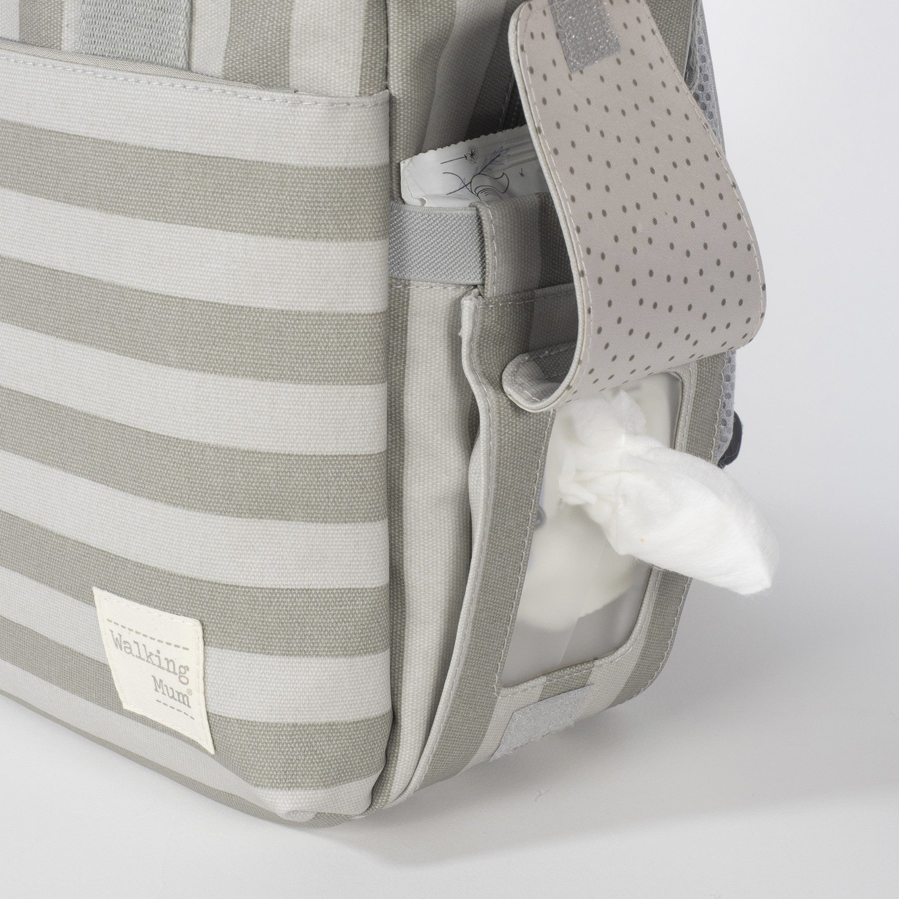 Bolso exterior para toalhitas;