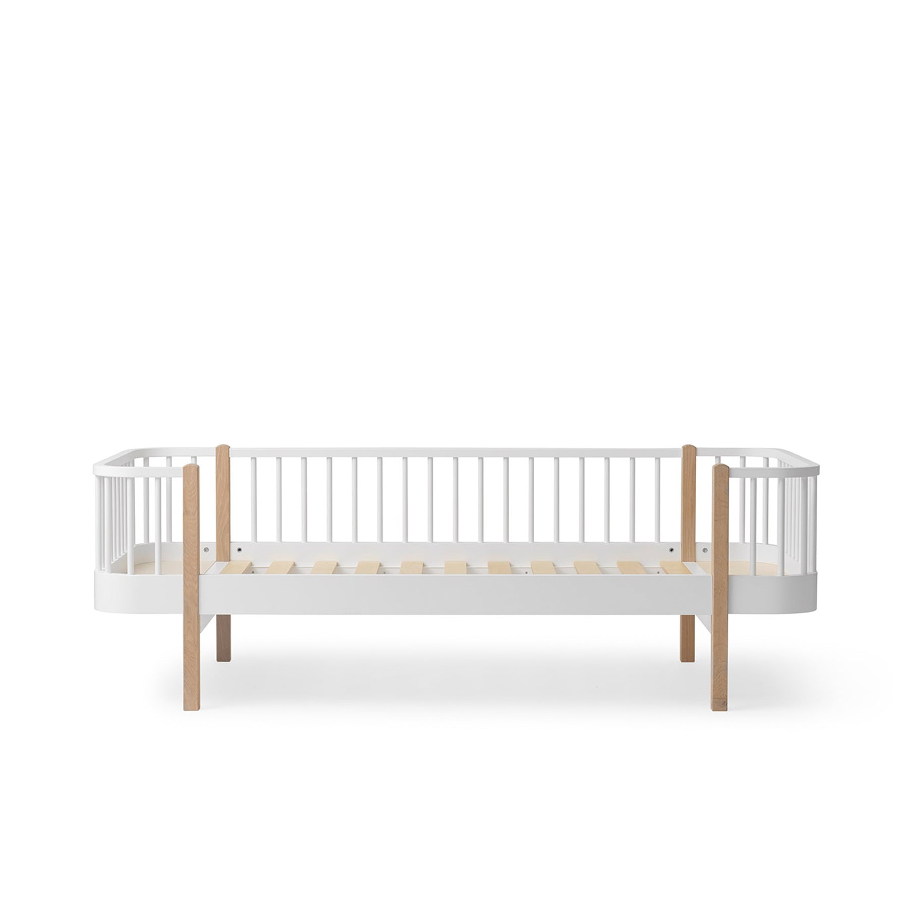 Esta é uma cama bastante versátil e intemporal que ficará na sua família por várias gerações. Uma cama que possui proteção numa das laterais que é possível remover. Com o passar dos anos, esta cama poderá ser transformada num loft com espaço para o seu filho brincar ou até num beliche no caso de a família crescer.