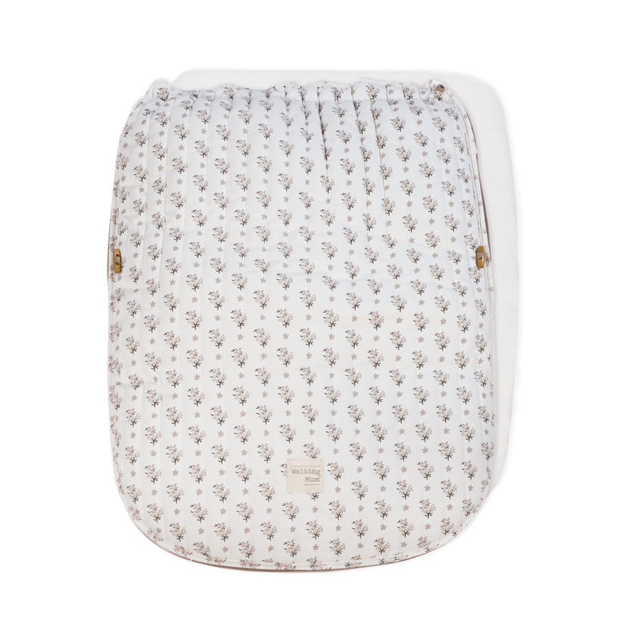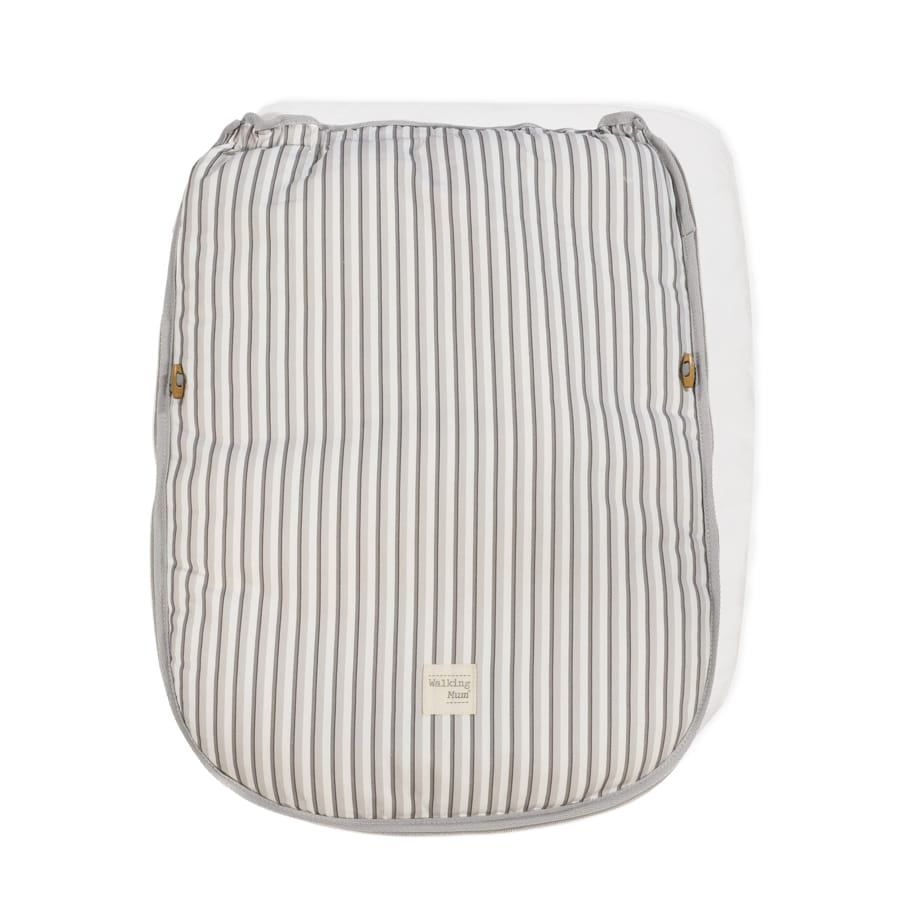 O formato possui diversas aberturas (ilhós) e ajustes que facilitam a adaptação à maioria dos carrinhos, tornando o passeio do seu bebé seguro e confortável.