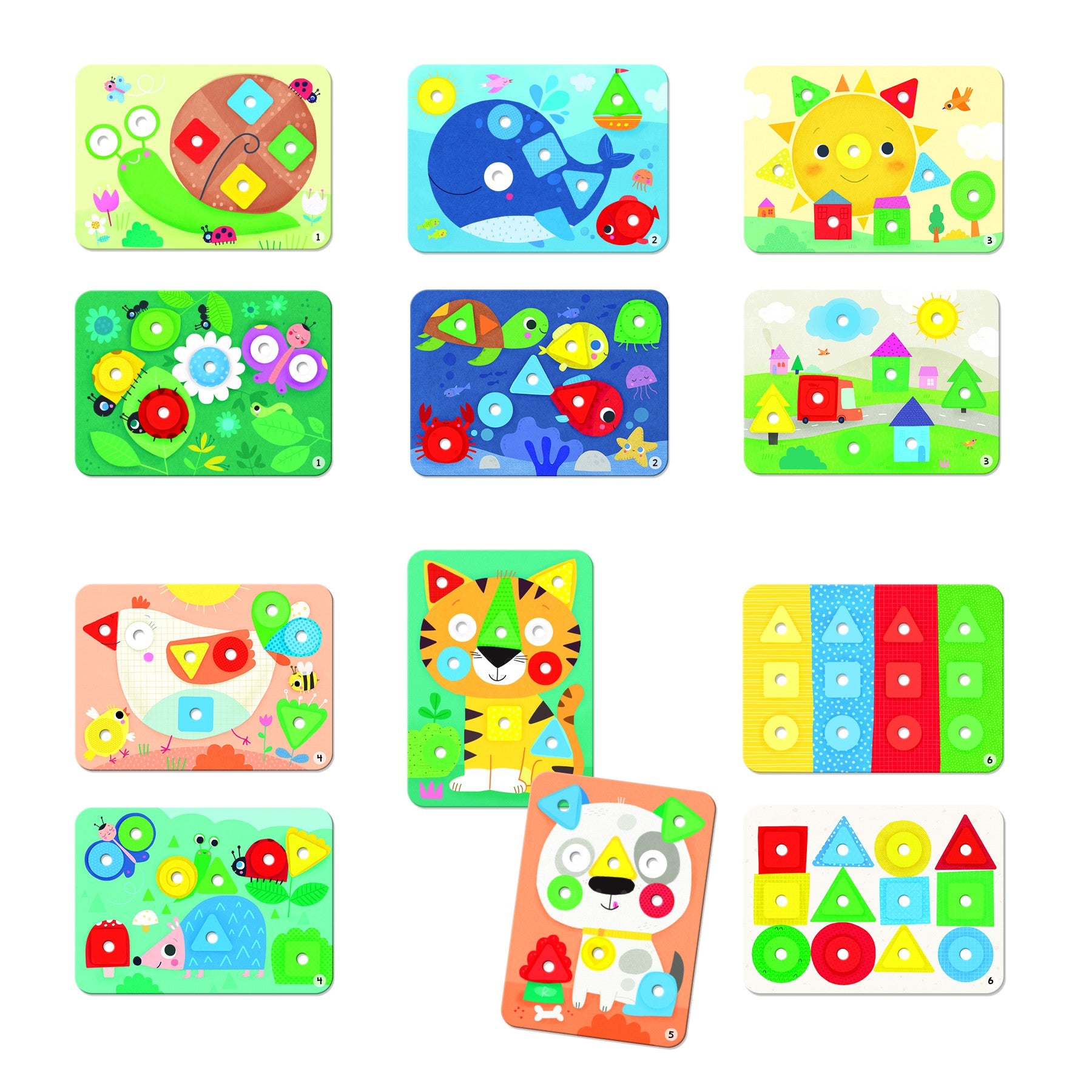 Ideal para as crianças aprenderem as formas e as cores, encaixando corretamente os pinos em cada folha.