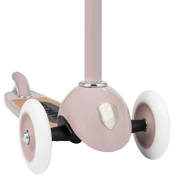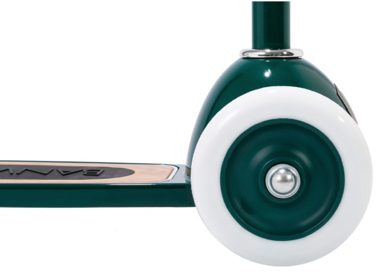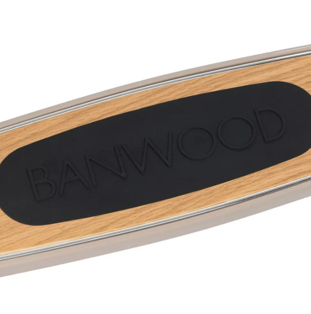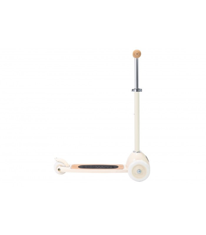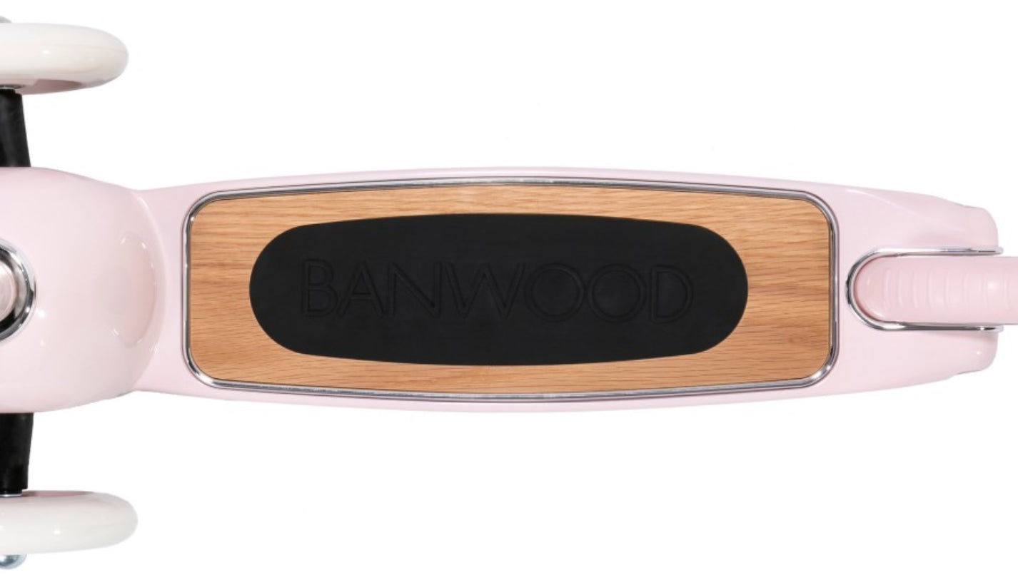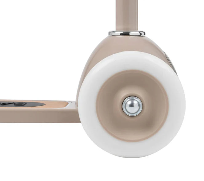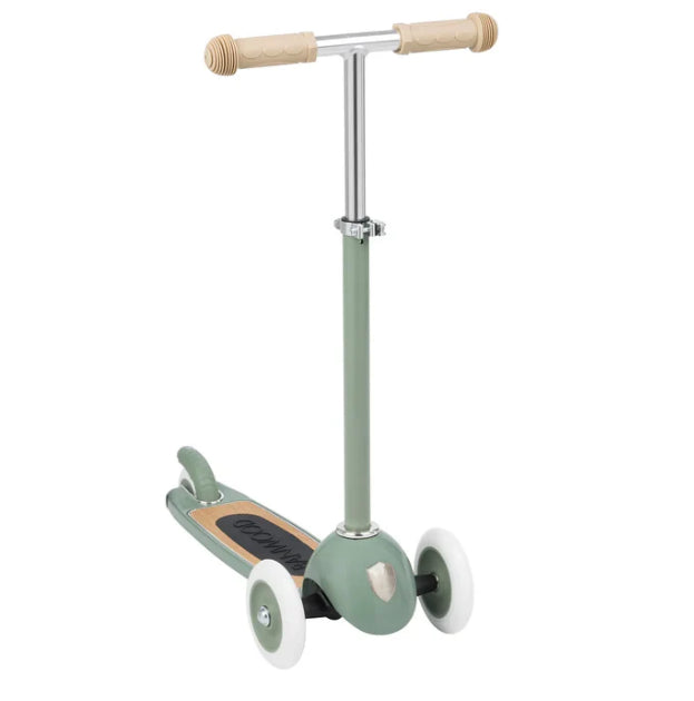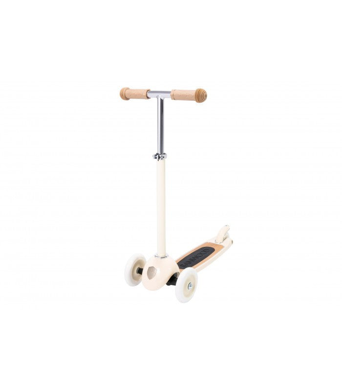 Esta trotinete Banwood de estilo retro tem uma estrutura durável de aço e a sua cesta de verga frontal é destacável e perfeita para levar os brinquedos preferidos ao parque.