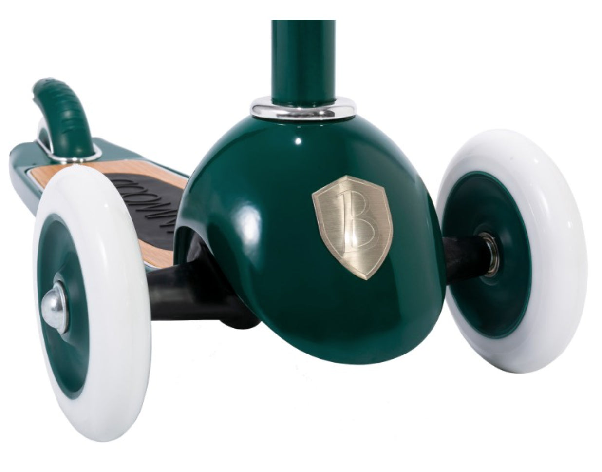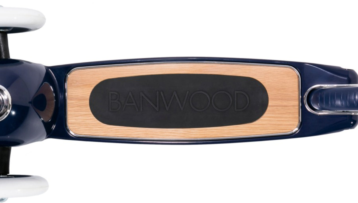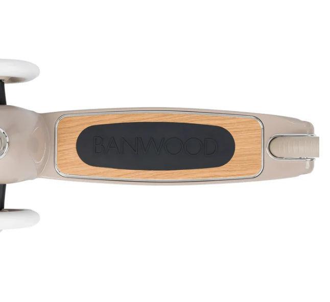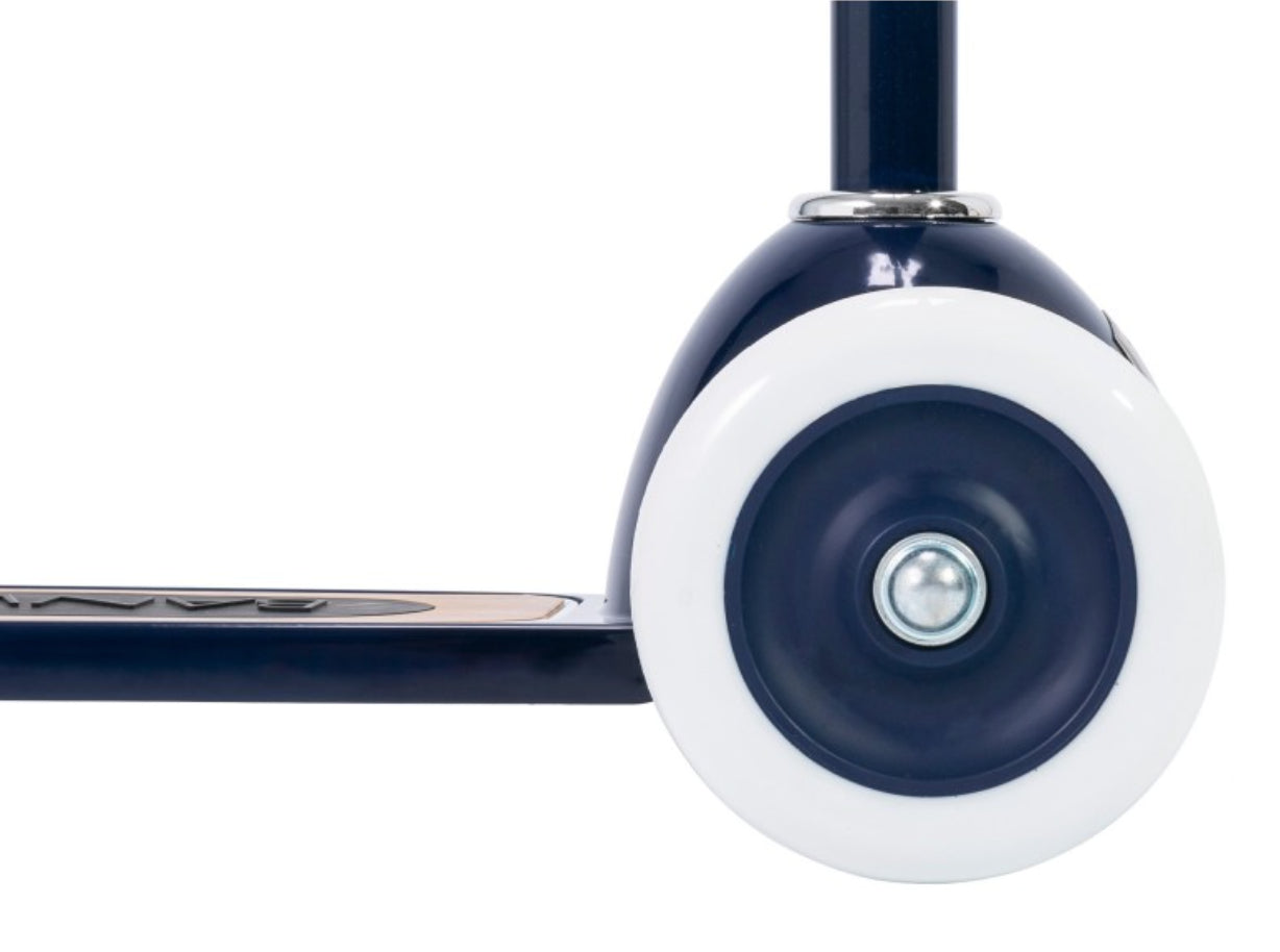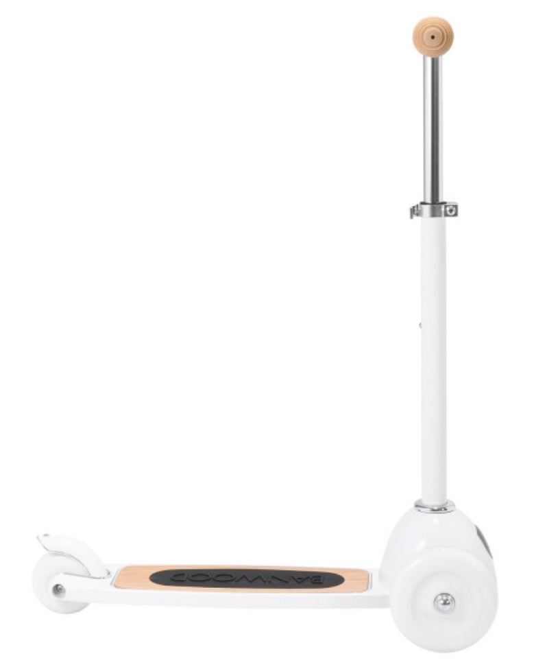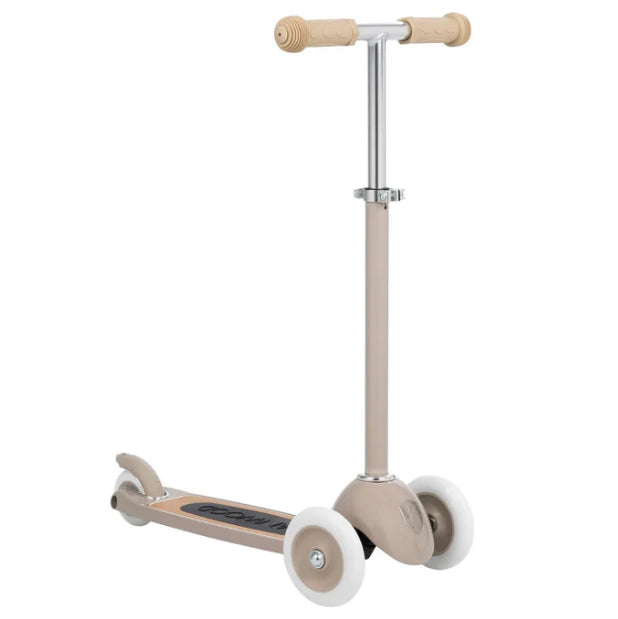 Esta trotinete Banwood de estilo retro tem uma estrutura durável de aço e a sua cesta de verga frontal é destacável e perfeita para levar os brinquedos preferidos ao parque.