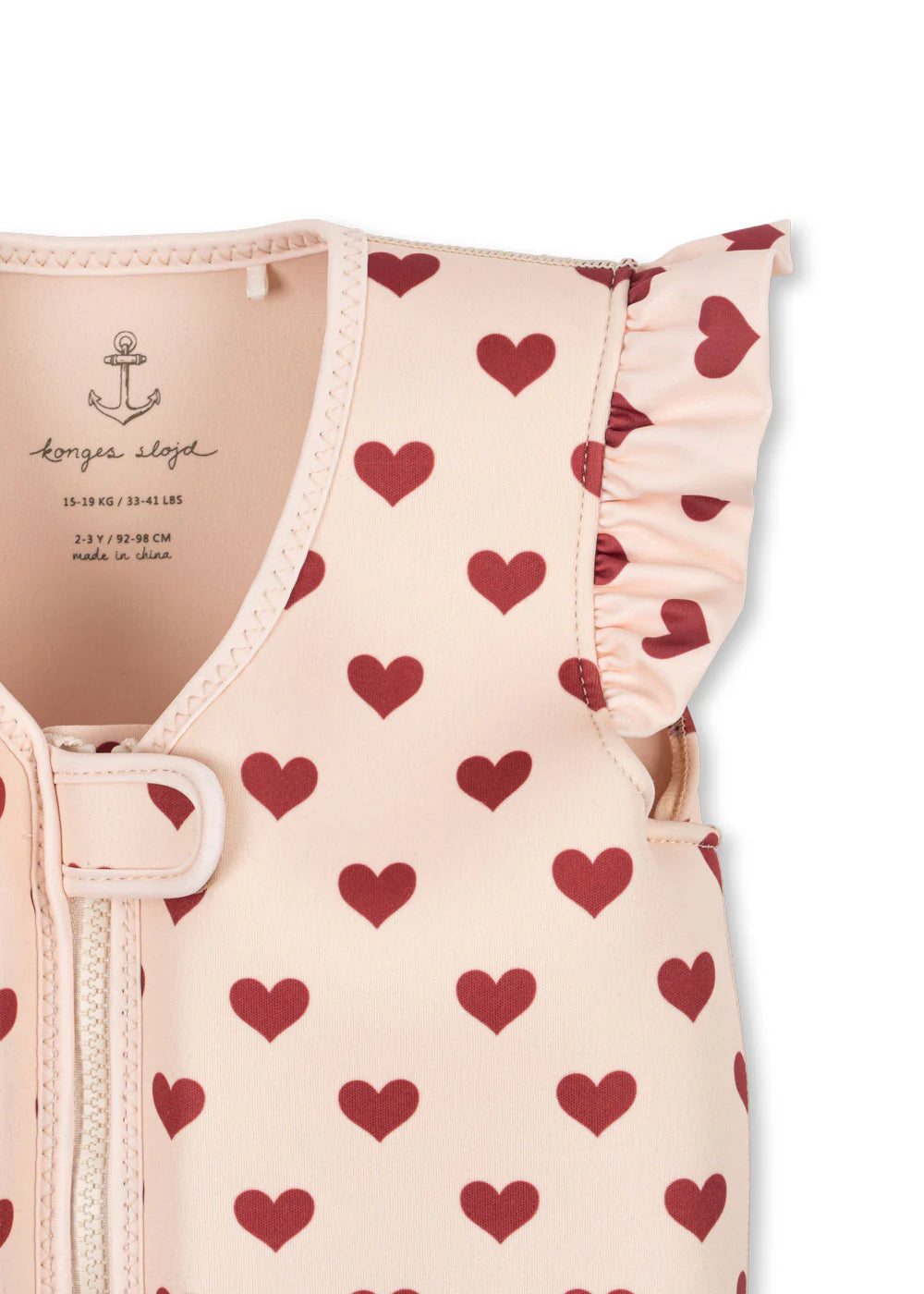 Em tons rosinha e repleto de corações, é a escolha ideal para momentos de diversão e aprendizagem na água.