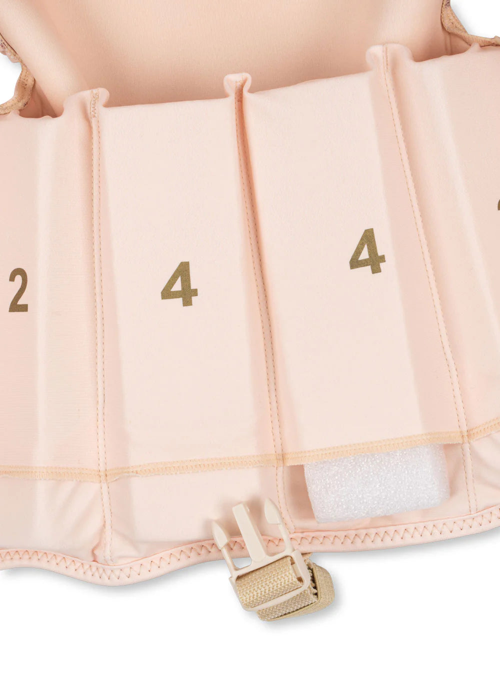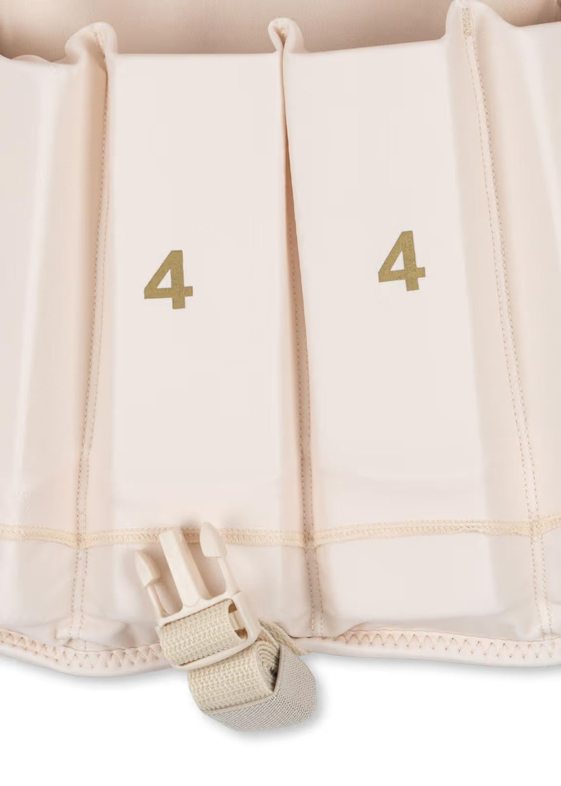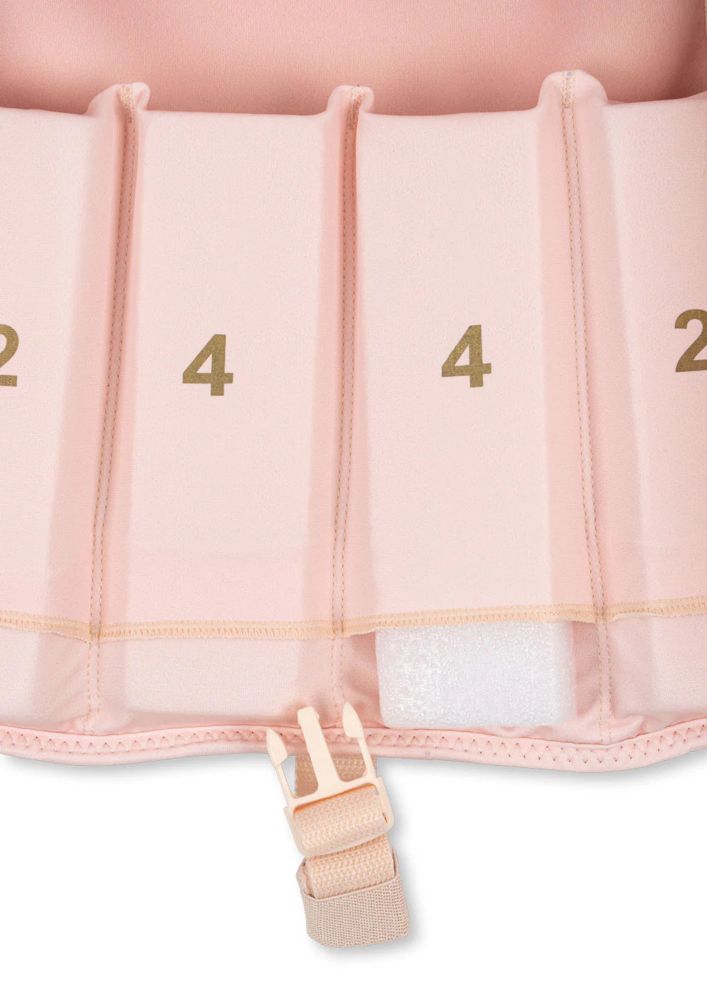 8 elementos de flutuabilidade que podem ser removidos gradualmente para que a criança aumente a sua capacidade de flutuar sem ajuda. Remover sempre os elementos aos pares.