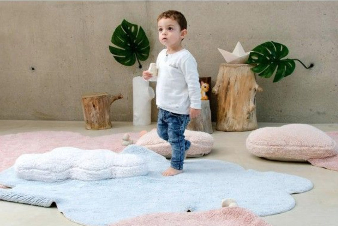 Este tapete é 100% algodão e pode ser lavado na máquina de lavar.