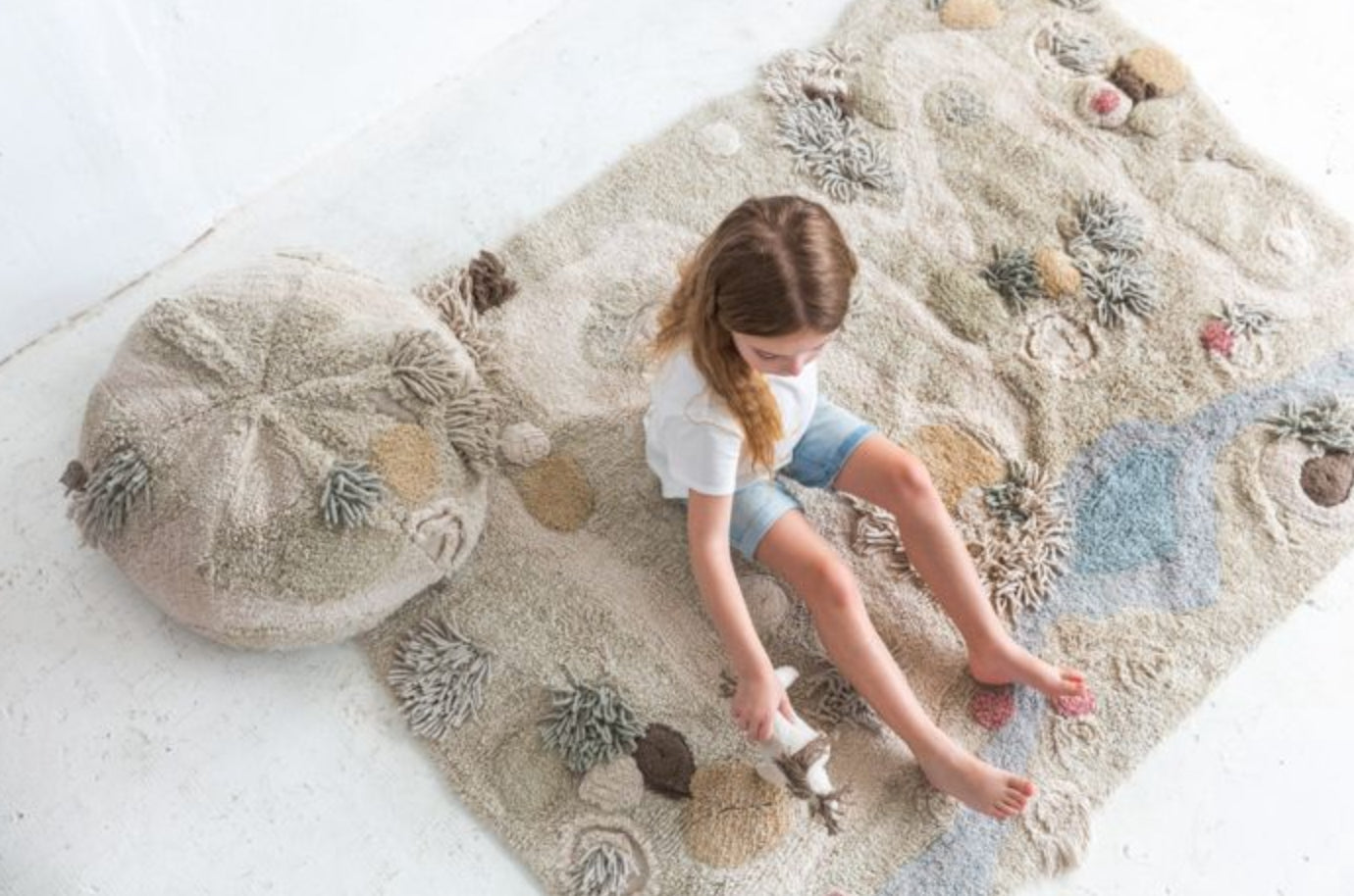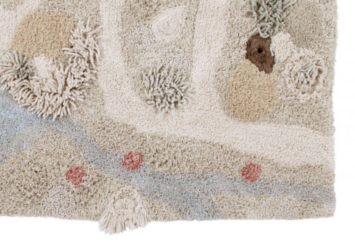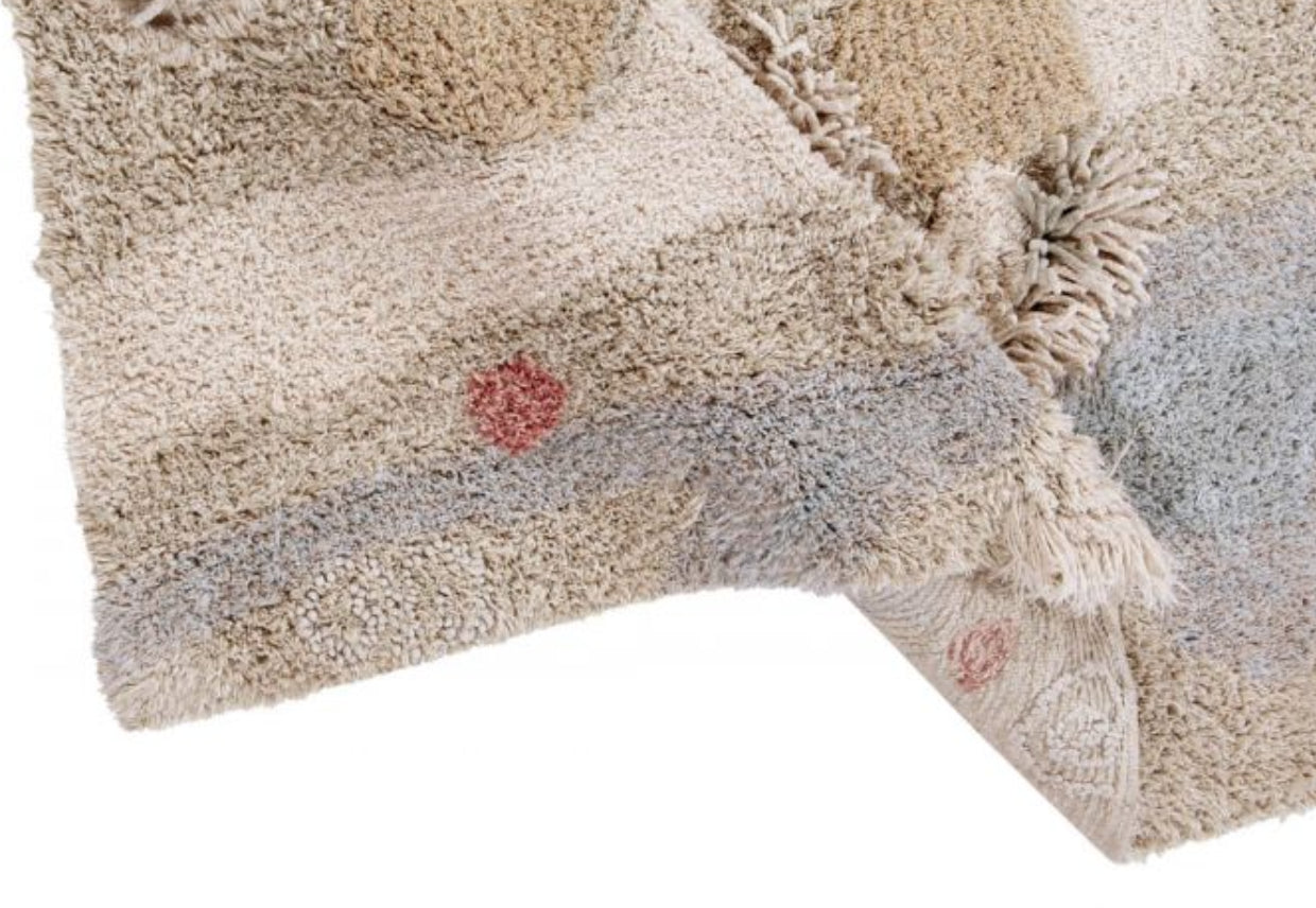 Este tapete é 100% algodão e pode ser lavado na máquina de lavar.
