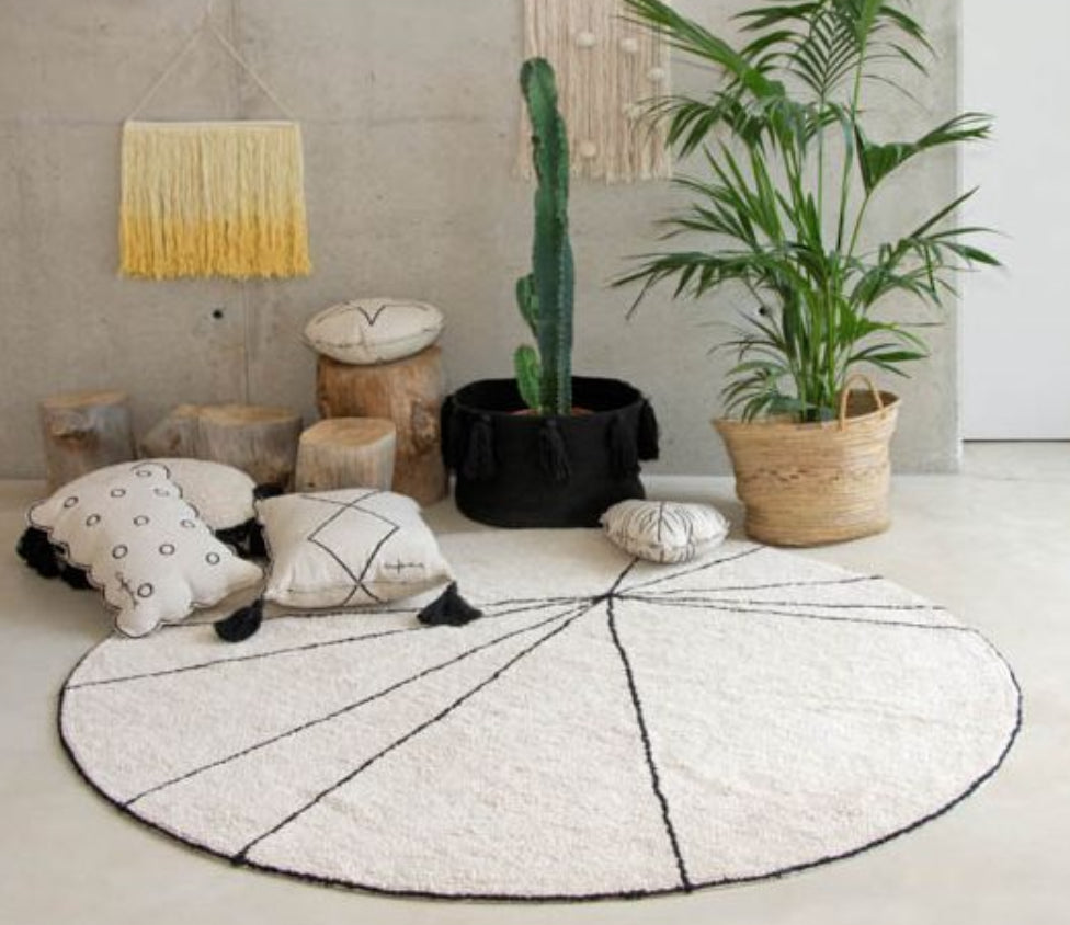 Este tapete é 100% algodão e pode ser lavado na máquina de lavar.