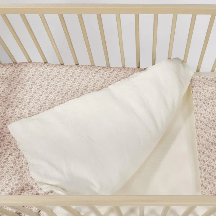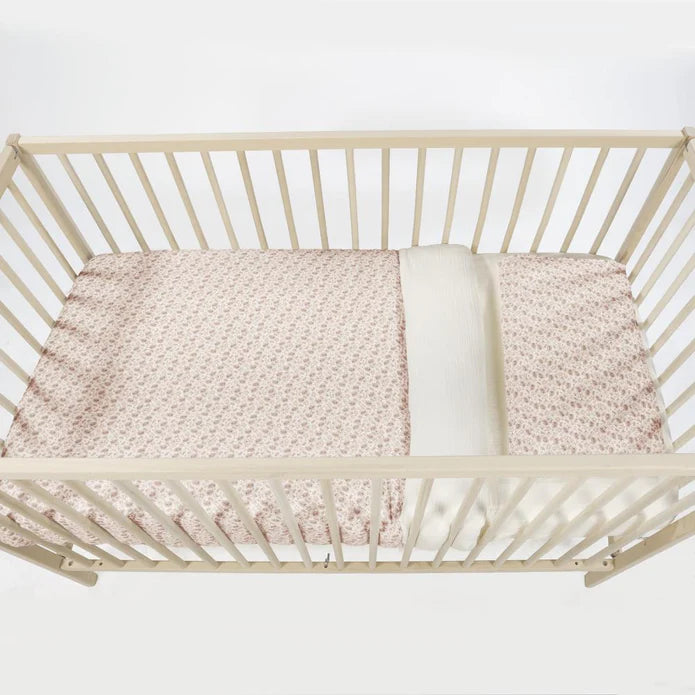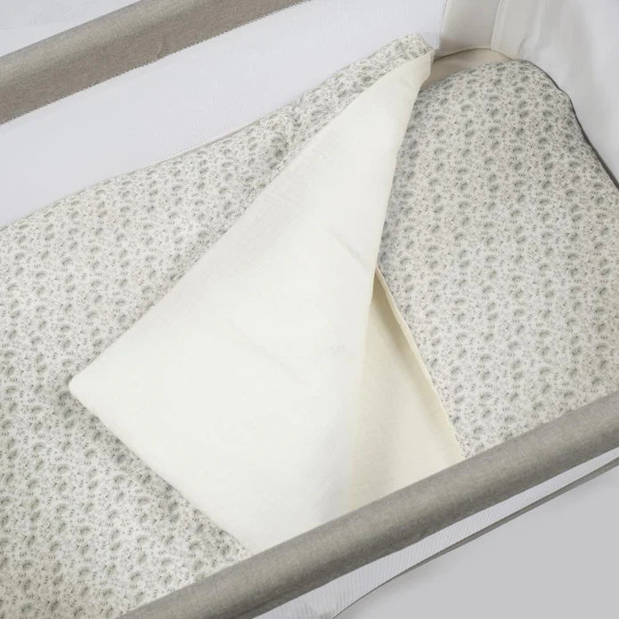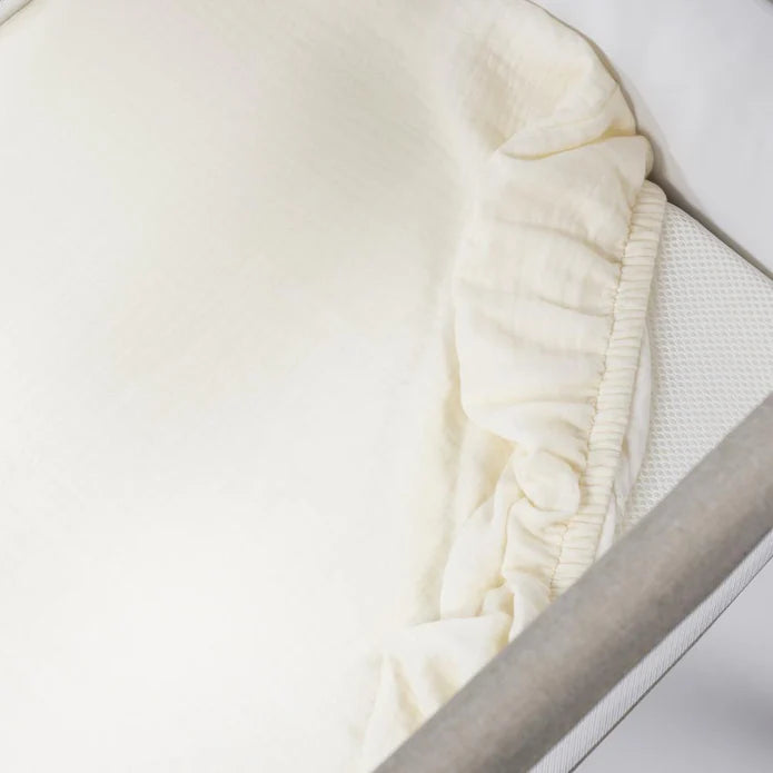 - O lençol de baixo com elástico é feito de musselina 100% algodão, um elemento essencial para o descanso do seu bebé.