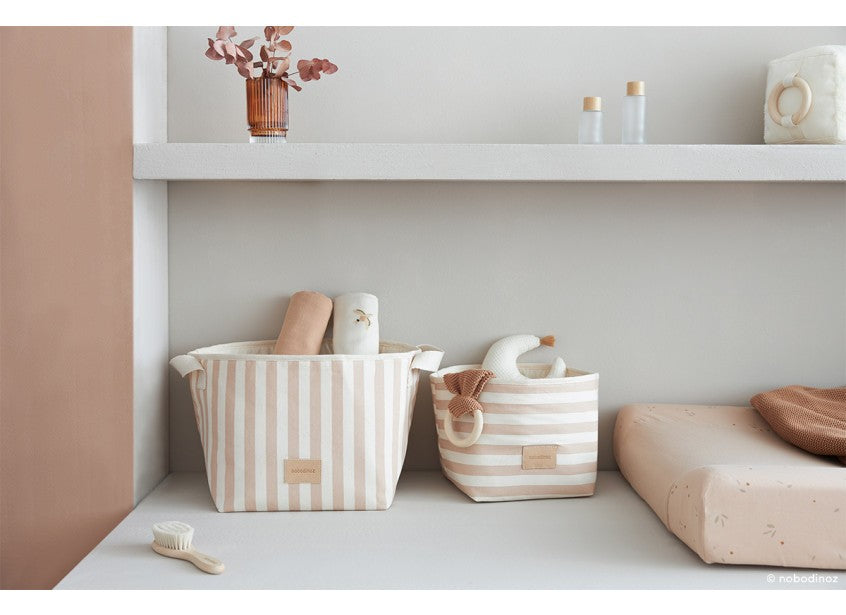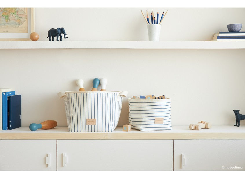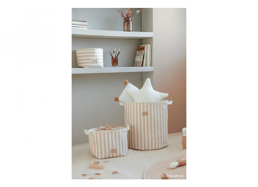 Este cesto para guardar brinquedos fica perfeito em qualquer quarto.