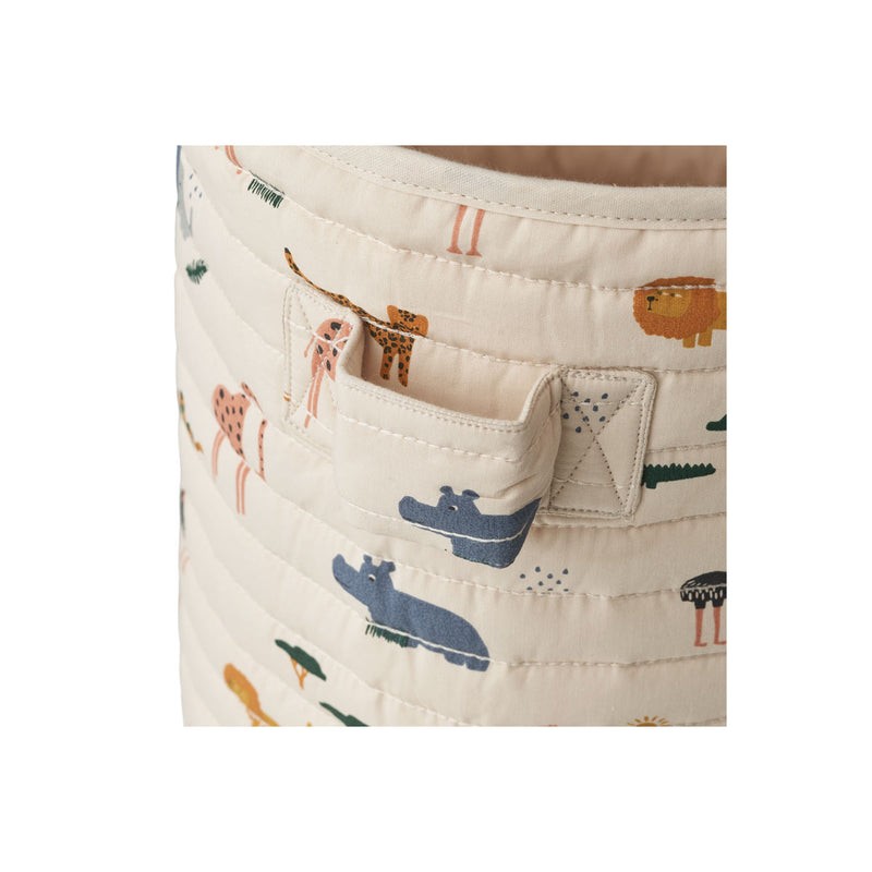 Este cesto para guardar brinquedos fica perfeito em qualquer quarto.