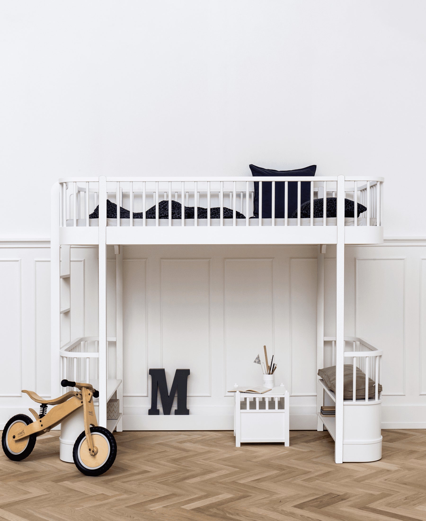Esta cama foi concebida de forma a que seja funcional em qualquer quarto. Um design que cria, na zona inferior, um espaço para as crianças brincarem, lerem, jogarem, estudarem e muito mais. Esta zona poderá ser usada também para a criação de um sofá, ou até mesmo um esconderijo com a compra de umas cortinas.