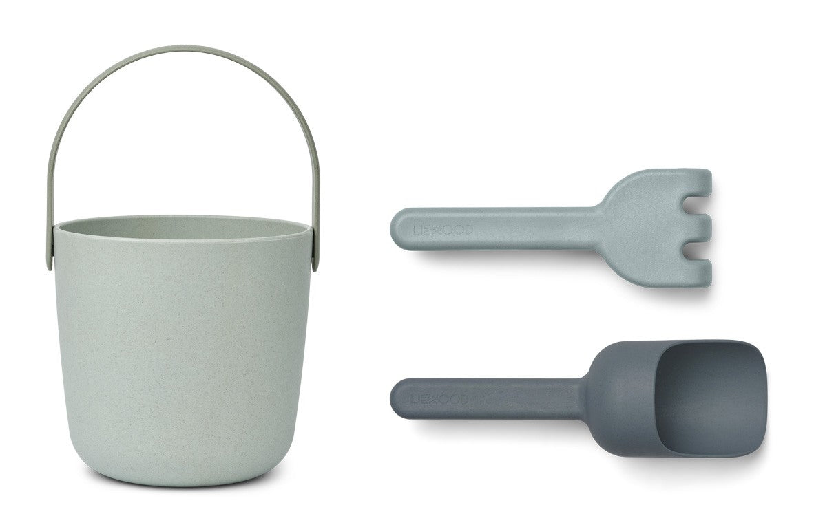 Conjunto de balde, 1 pá e 1 ancinho.