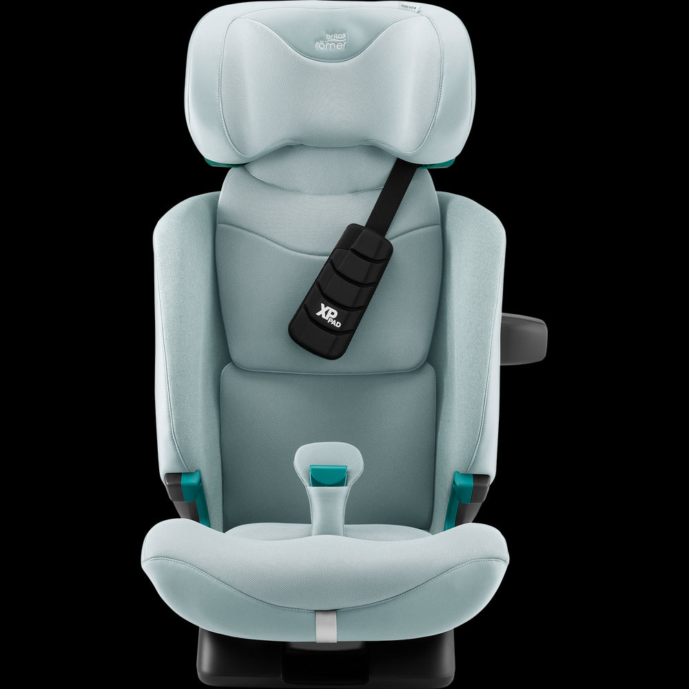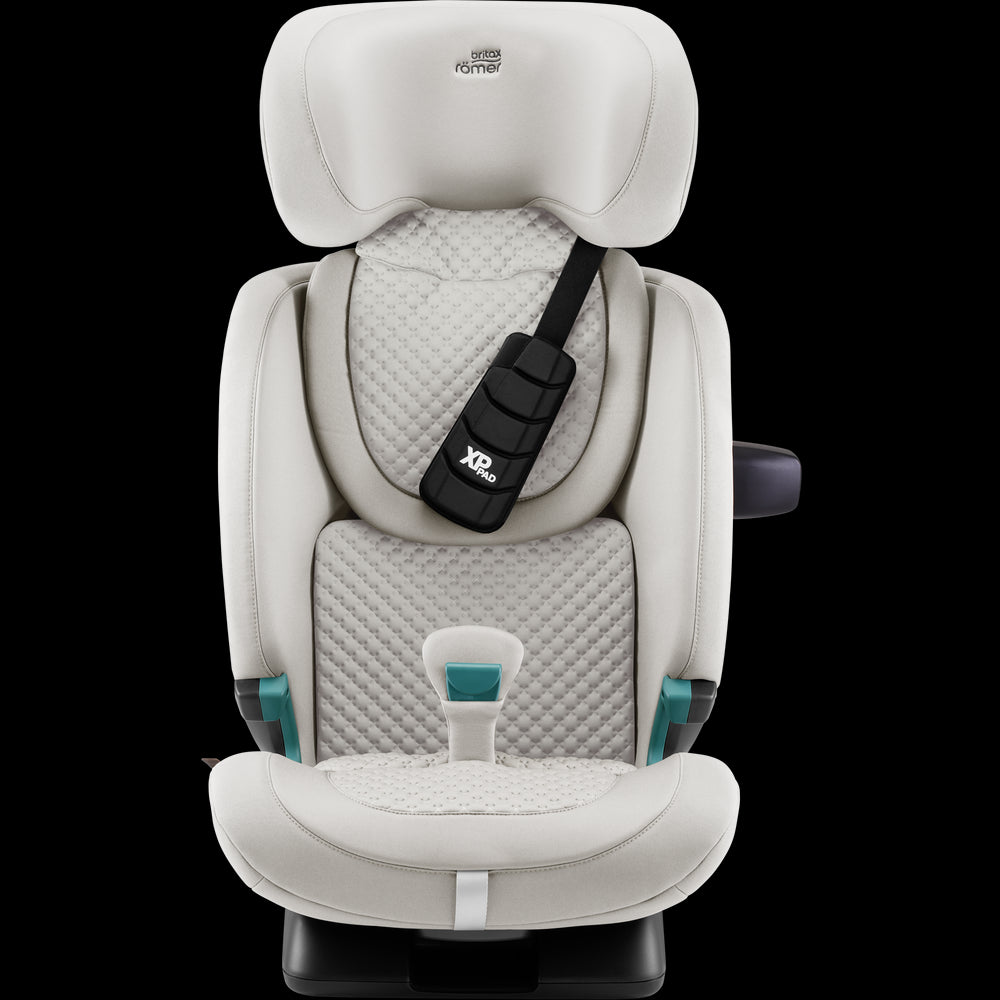 O encosto de cabeça alto, desenhado em forma de V, foi concebido para acompanhar o crescimento do seu filho mas também para limitar o movimento da sua cabeça, protegendo o pescoço em caso de acidente. O XP-PAD aprimorado também contribui para a proteção desta parte do corpo, reduzindo o movimento brusco da cabeça para a frente até 30%, evitando que o queixo do seu filho bata no próprio peito. Além disto, adiciona uma borda acolchoada para que o cinto não corte a pele. O SICT reduz a força de um impacto lateral até 40%, oferecendo proteção extra.