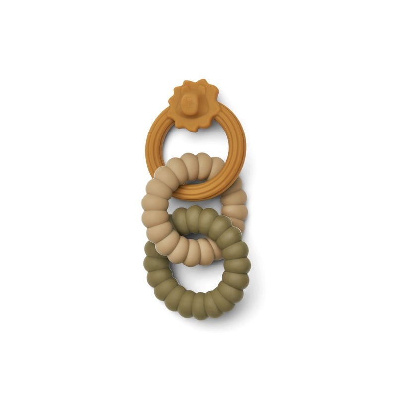 Este mordedor tem várias texturas que proporcionam conforto, acalmam e ajudam a estimular o crescimento dos novos dentes do seu bebé.