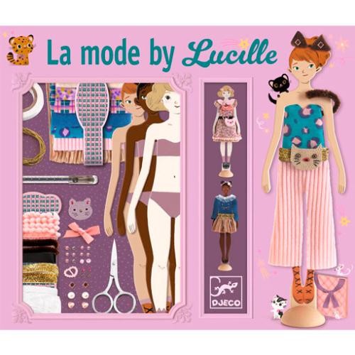 Inclui: 3 bonecos, 3 bases de madeira, 1 tecido estampado, 5 tecidos de vários materiais, 5 tranças ou fitas, 2 cordões elásticos, 1 saco de missangas e pequenos acessórios, 1 folha de cristais de rocha autocolantes, 1 tesoura, 1 rolo de fita-cola de dupla face, 1 caneta e 3 quadros de modelos.