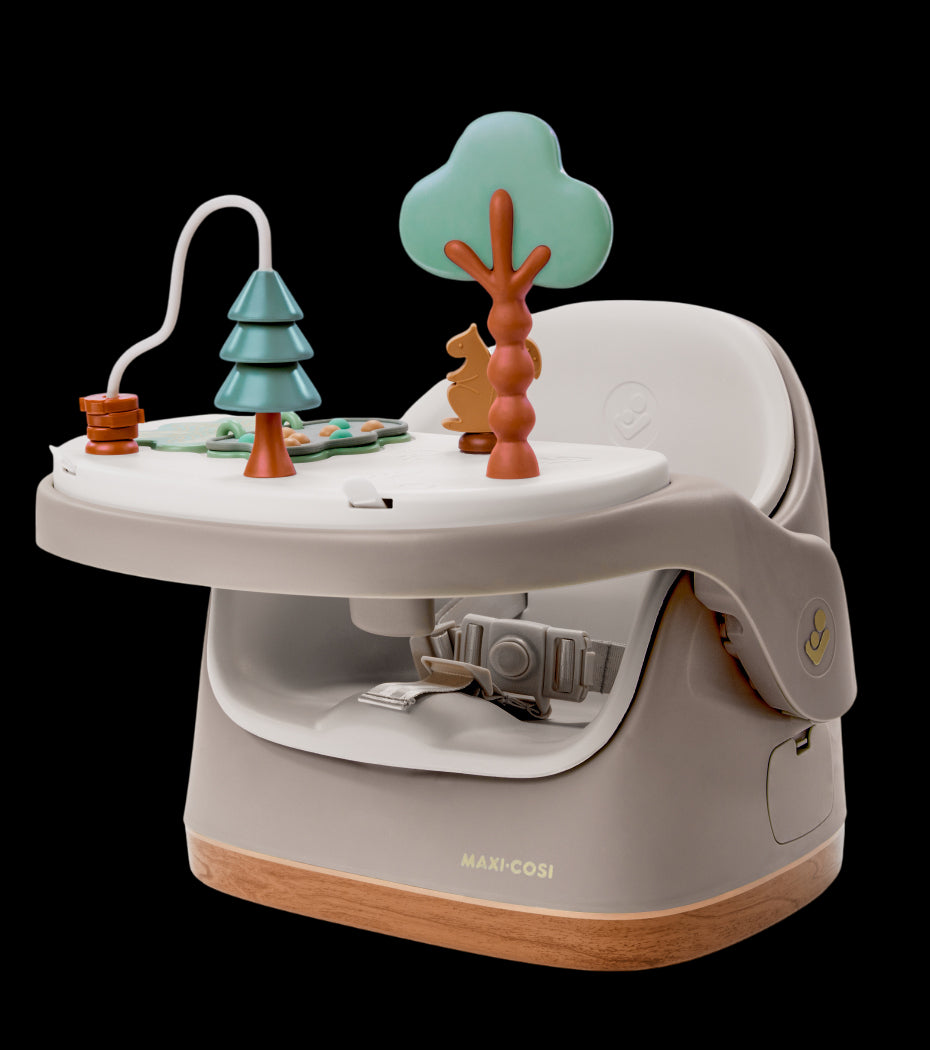 2 em 1: De cadeira de papa a assento de chão, com tabuleiro e divertidos brinquedos, o Jay Plus tem tudo o que o pequeno precisa para desenvolver a motricidade fina.