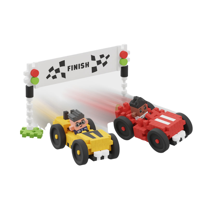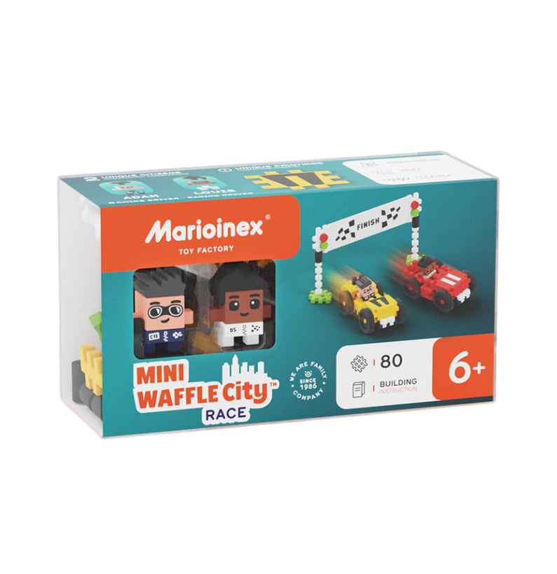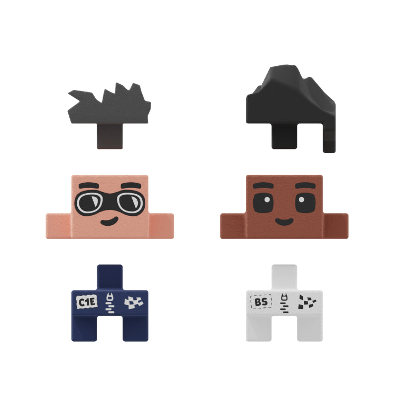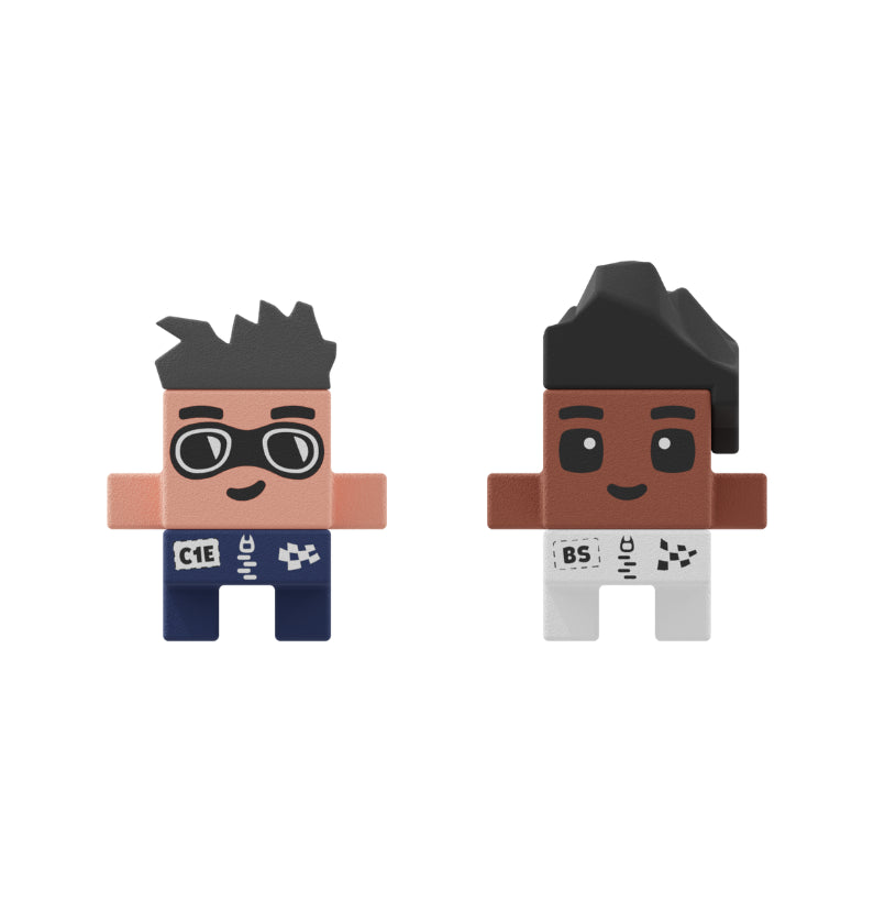 2 figuras no conjunto – Adam e Louis, pilotos de corrida;