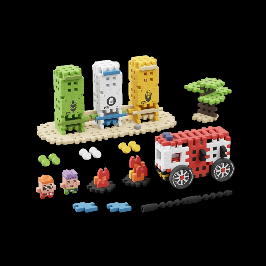 Blocos e embalagens produzidos a partir de materiais renováveis e recicláveis.