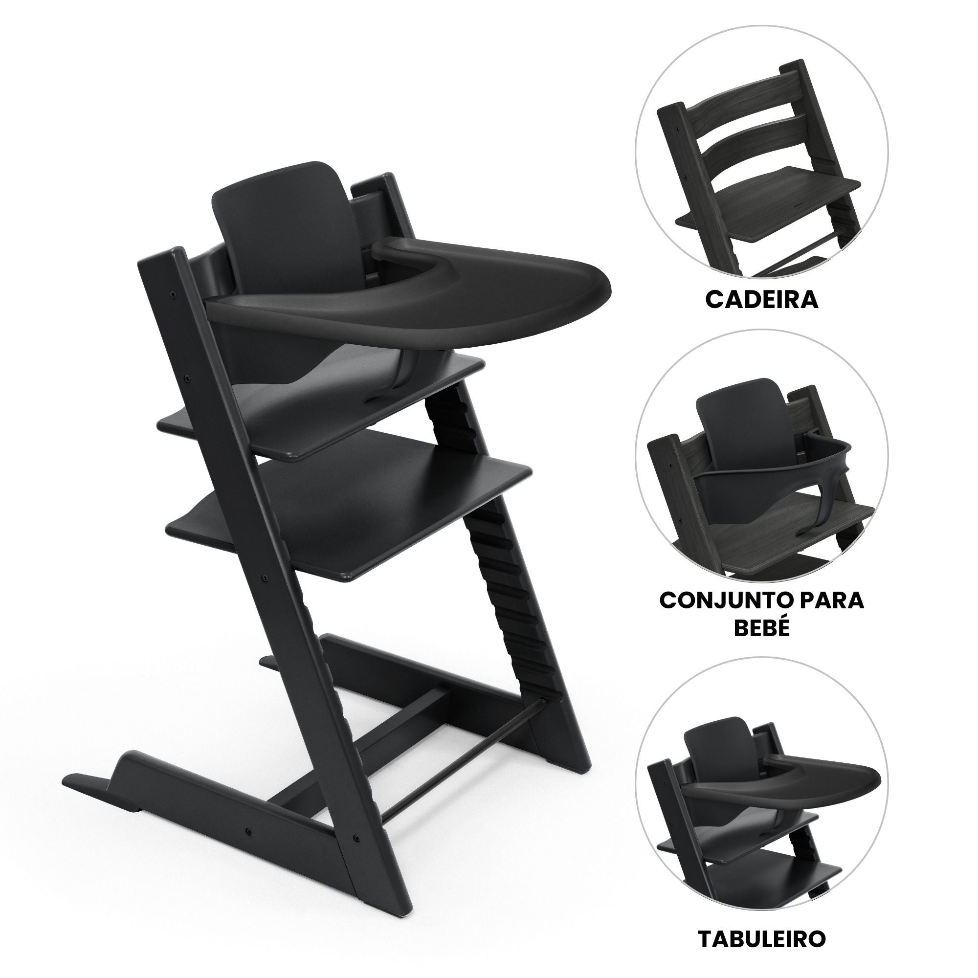 STOKKE TRIPP TRAPP + BABY SET² + TABULEIRO - OAK BLACK