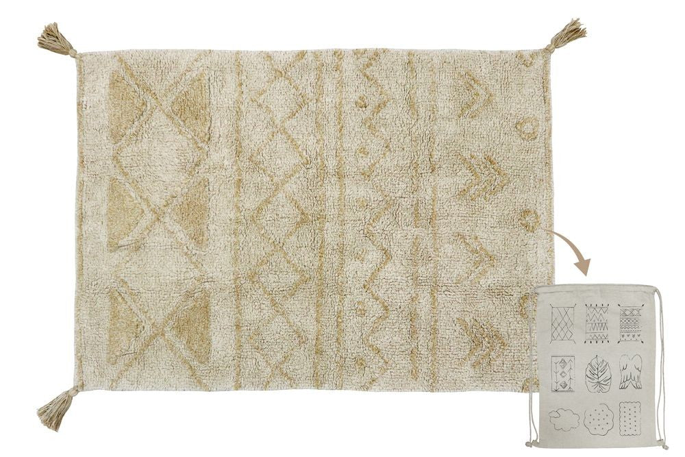 Este tapete é 100% lã e pode ser lavado na máquina de lavar.